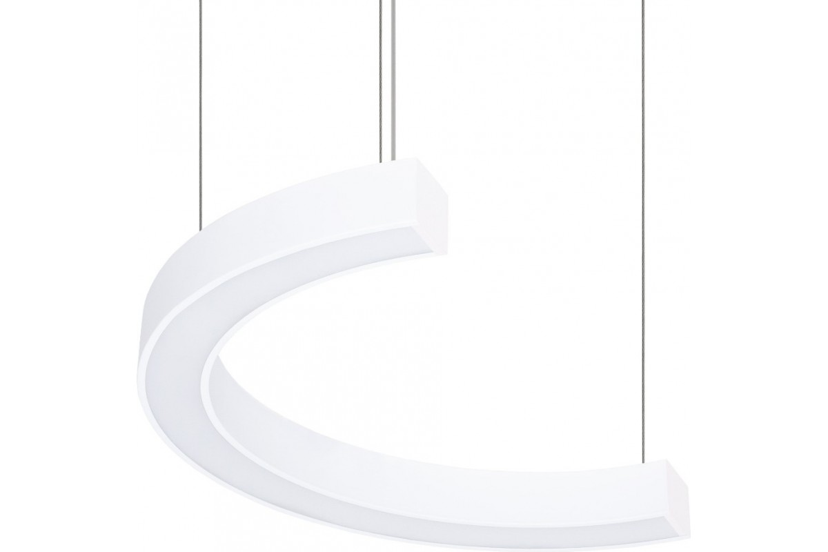 Modern and decorative in form, the distinctive “C”-shaped LED luminaire is offered in three sizes, providing flexible design possibilities for a wide range of indoor environments. With direct light distribution and a sleek white finish (RAL 9003S), it merges architectural sophistication with effective, functional illumination.