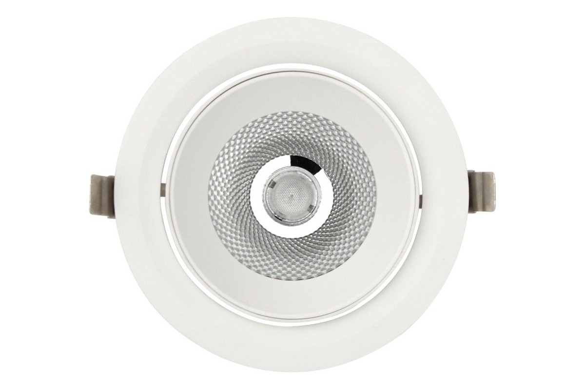 Crafted from durable aluminium and finished in a clean white (RAL 9016), the housing integrates seamlessly into ceilings through cut-out openings and includes mounting brackets for easy installation. Ideal for retail environments, showrooms, public spaces, museums, and exhibitions, this spotlight provides adaptable, refined lighting solutions where precision and style are essential.