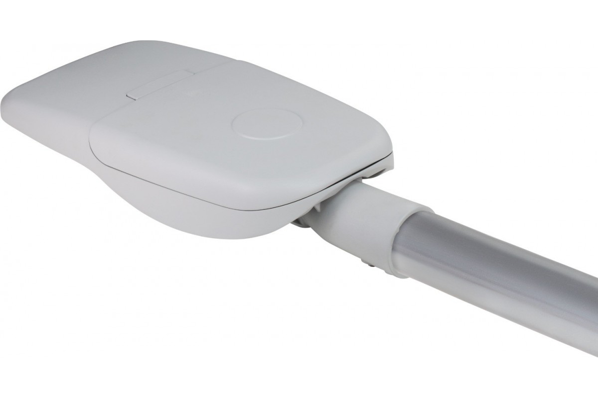 Encased in a sleek aluminium housing finished in light grey (RAL7035), the luminaire offers a modern aesthetic that complements urban environments. Its versatile mounting options accommodate both horizontal and vertical 60mm poles, as well as wall installations (with a separately available mounting bracket). Adjustable tilt angles of 15° further enhance flexibility, allowing precise alignment to optimize light distribution for a variety of outdoor applications.