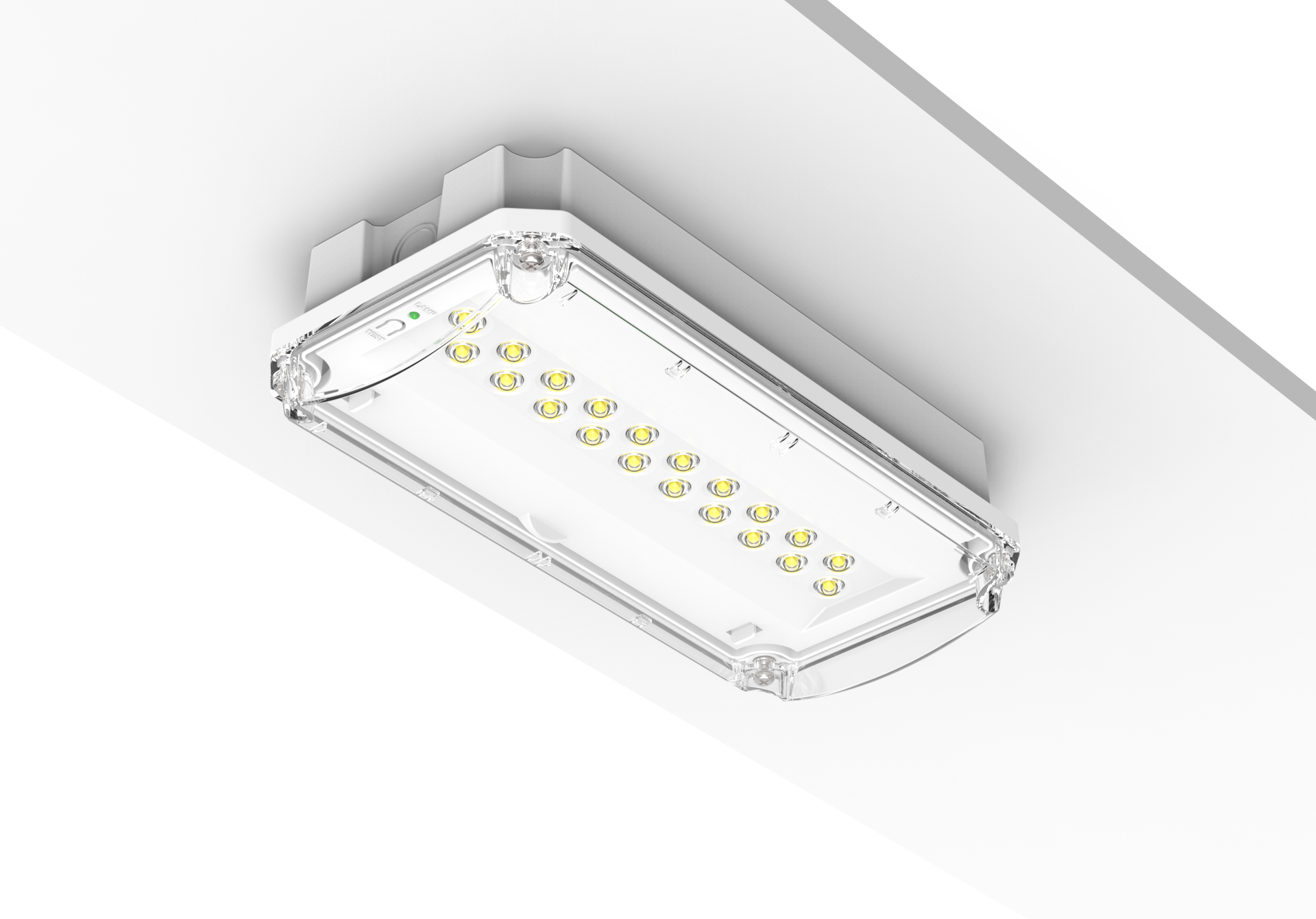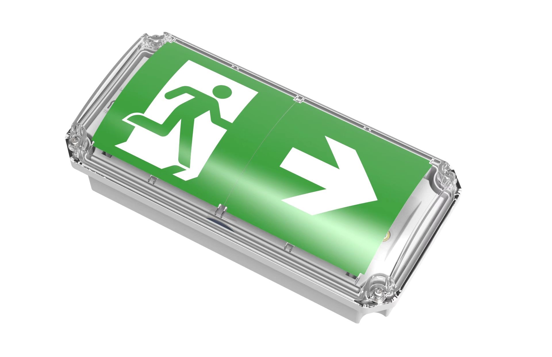 Offering a compact design, this emergency exit luminaire features a rotatable legend that can be easily adjusted to point in any direction, providing exceptional adaptability for diverse installation requirements. The legend securely clips inside the diffuser, ensuring a clean and durable finish.