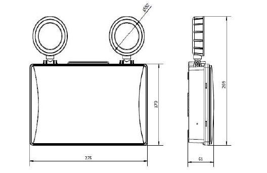 Featuring a sleek and modern design, this emergency lighting unit offers dependable illumination through two heads delivering 150 and 300 lumens respectively, ensuring safe and effective egress lighting. Crafted from durable polycarbonate and intended for wall mounting, it operates efficiently within an ambient temperature range of 0C to 45C.
