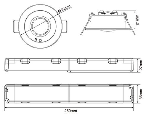 Order Code | Wattage | Delivered Lumens (ta +25°C) | System Efficacy (lm/W) | CCT-K | Length (mm) | Width (mm) | Height (mm) | Cut-Out (mm) |