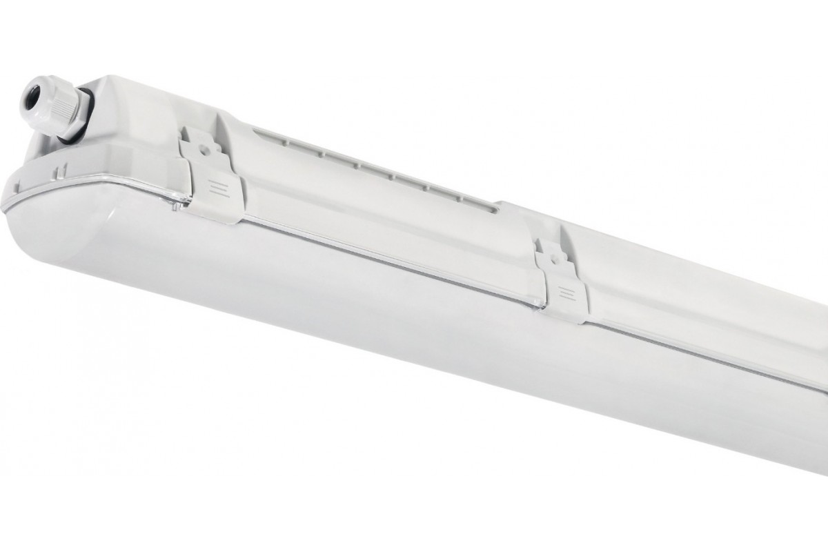 Offering robust versatility, the LED luminaire is designed for both surface and suspended installation, delivering direct light distribution through a UV-stable, impact-resistant opal polycarbonate diffuser. Its durable polycarbonate housing in light grey guarantees reliable performance in demanding indoor environments as well as sheltered outdoor areas.